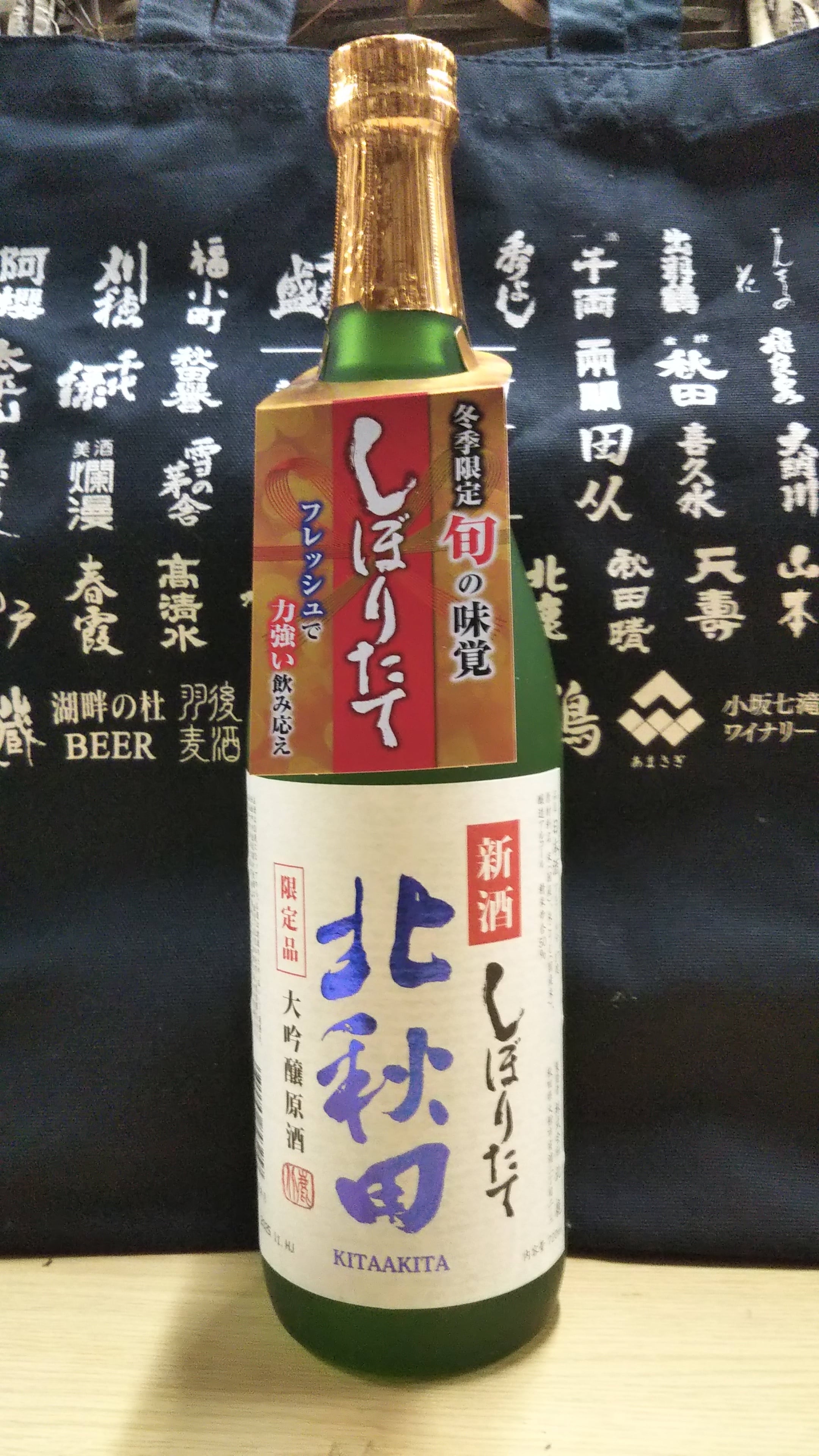 『新酒しぼりたて』好評を頂いている「大吟醸北秋田」このできたて・搾りたての新酒を原酒のまま瓶詰めし、特別に蔵出し致します。ふくよかな麹の香りと濃厚な米の旨味、キリッと引き締まった後味が特徴です。